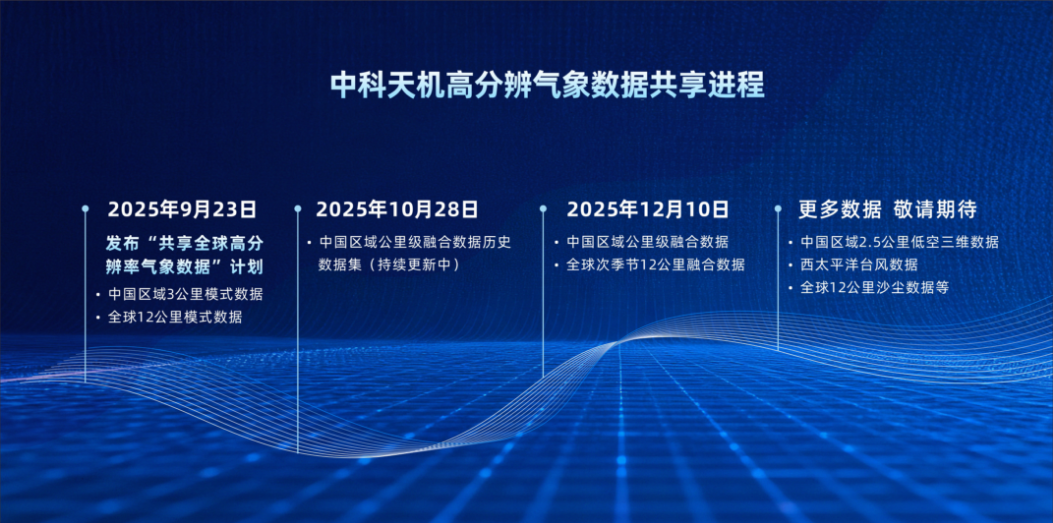2025年12月10日,中科曙光旗下中科天机气象科技有限公司(以下简称“中科天机”),正式向全球共享中国区1公里气温/2.5公里50+要素,以及全球46天次季节12公里20+要素气象融合数据。中科天机已于今年9月全球率先发布高分辨率气象数据共享计划,并先后共享了高分辨率模式数据、历史数据集,此次为年内第三次共享,也是中国企业首次向全球共享高分辨率气象融合数据,标志着我国在高质量气象数据共享领域实现全球突破。